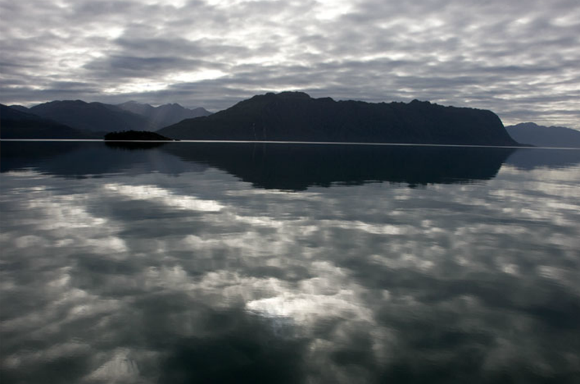 over Canal Messier, one of the major routes through the fjords. Patagonia 's weather can be wild, but the fjords are